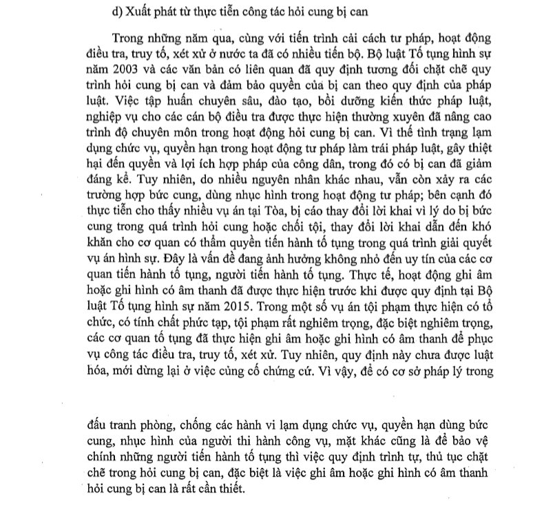 Hiện tại việc ghi âm hoặc ghi hình bị can đã được triển khai thực hiện thí điểm, tuy nhiên để triển khai được trên toàn quốc cần có lộ trình thích hợp.