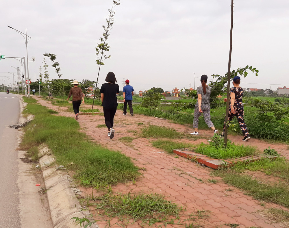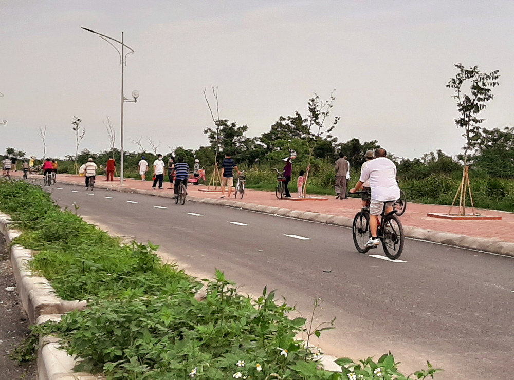 Trên trục đường Bắc Sơn – Nam Hải mới đưa vào sử dụng, mặc dù có quy định rất rõ ràng về việc phòng chống dịch nhưng nhiều người dân vẫn tụ tập ở vỉa hè của tuyến đường để tập thể dục…