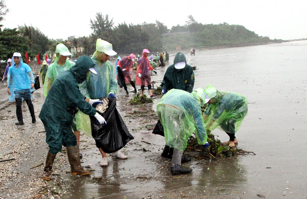 Đoàn thanh niên thu dọn rác tại bãi biển Đồ Sơn