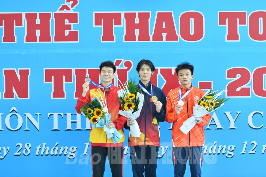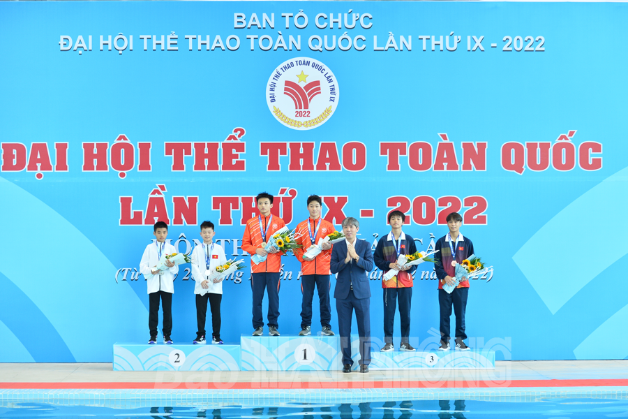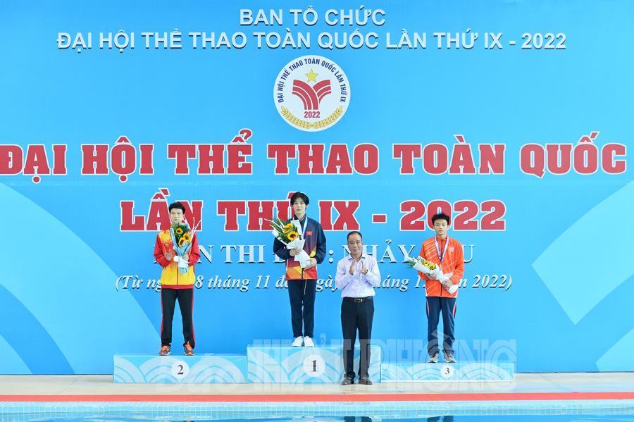 Đồng chí Nguyễn Đình Nghĩa, Giám đốc Trung tâm huấn luyện và thi đấu TDTT thành phố Hải Phòng trao huy chương vàng, bạc, đồng tặng các VĐV nội dung 1m cầu mềm đơn nam.Đồng chí Nguyễn Đình Nghĩa, Giám đốc Trung tâm huấn luyện và thi đấu TDTT thành phố Hải Phòng trao thưởng nóng tặng VĐV Nguyễn Tùng Dương môn nhảy cầu.VĐV Nguyễn Tùng Dương xuất sắc giành HCV môn nhảy cầu nội dung đơn nam 1m cầu mềm tại Đại hội Thể thao toàn quốc lần thứ 9 năm 2022 với 324,5 điểm.VĐV Nguyễn Tùng Dương xuất sắc giành HCV môn nhảy cầu nội dung đơn nam 1m cầu mềm tại Đại hội Thể thao toàn quốc lần thứ 9 năm 2022 với 324,5 điểm.VĐV Nguyễn Tùng Dương xuất sắc giành HCV môn nhảy cầu nội dung đơn nam 1m cầu mềm tại Đại hội Thể thao toàn quốc lần thứ 9 năm 2022 với 324,5 điểm.VĐV Nguyễn Tùng Dương xuất sắc giành HCV môn nhảy cầu nội dung đơn nam 1m cầu mềm tại Đại hội Thể thao toàn quốc lần thứ 9 năm 2022 với 324,5 điểm.