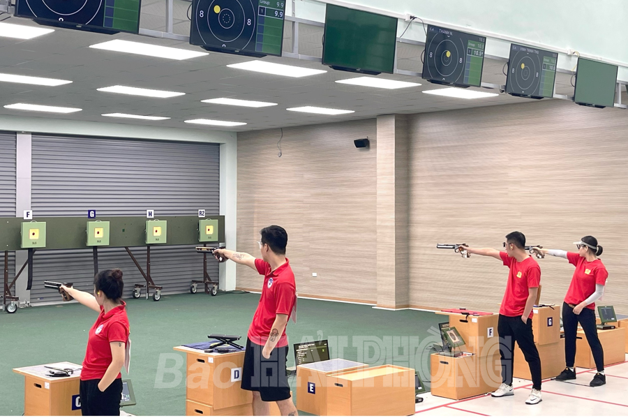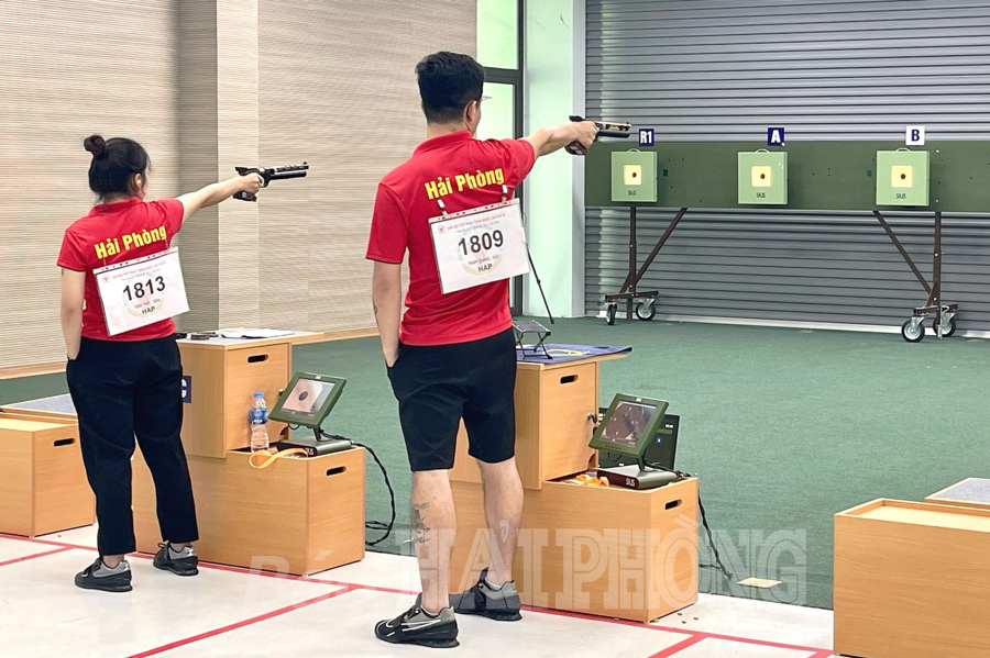 Cùng ngày, tại môn bắn súng, bộ đôi Phạm Quang Huy và Trần Thùy Linh giành huy chương bạc nội dung đồng đội 10m súng ngắn hơi hỗn hợp sau khi thua với tỷ số 12-16 trước đôi VĐV Trịnh Thu Vinh và Nguyễn Đình Thành của đội Công an nhân dân.