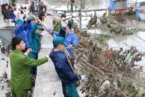 Đoàn viên thanh niên CAQ Hồng Bàng tham gia dọn vệ sinh môi trường