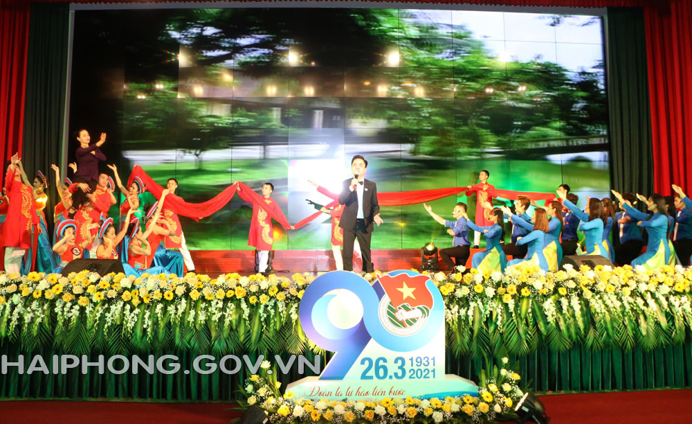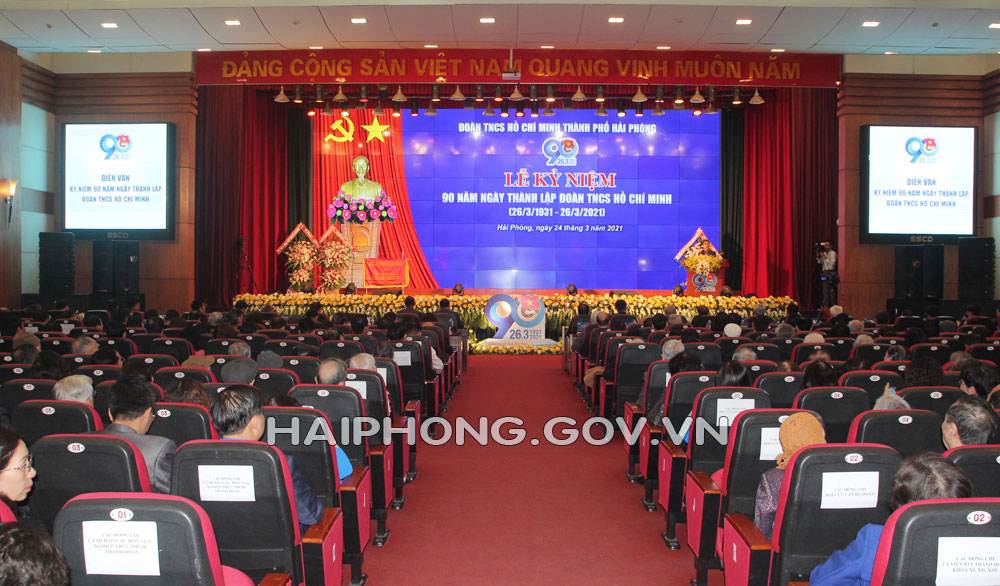 Tại Lễ kỷ niệm, đồng chí Đào Phú Thùy Dương, Bí thư Thành đoàn Hải Phòng đã đọc diễn văn ôn lại truyền thống vẻ vang 90 năm xây dựng, trưởng thành và cống hiến cho cách mạng, cho dân tộc của Đoàn TNCS Hồ Chí Minh. Đồng chí nhấn mạnh: 90 năm qua, cùng với sự phát triển của đất nước, dưới sự lãnh đạo của Đảng và Bác Hồ kính yêu, Đoàn TNCS Hồ Chí Minh và các thế hệ thanh niên Việt Nam đã nối tiếp viết lên những truyền thống vẻ vang của các thế hệ đi trước. Tuổi trẻ Việt Nam hôm nay vững bước dưới ngọn cờ vinh quang của Đảng, quyết tâm đem sức trẻ, trí tuệ, nhiệt tình cách mạng để cống hiến cho sự nghiệp xây dựng và bảo vệ vững chắc Tổ quốc Việt Nam xã hội chủ nghĩa. Phát huy truyền thống của các thế hệ cha anh đi trước, tuổi trẻ Hải Phòng luôn thực hiện tốt lời Bác dạy thanh niên Hải Phòng, đó là “Thanh niên đoàn kết-gắng học tập-gắng công tác-tiến lên, tiến lên”, nguyện không ngừng học tập, rèn luyện, xung kích, sáng tạo, tích cực tham gia xây dựng thành phố hướng tới mục tiêu đến năm 2045, Hải Phòng thực sự trở thành thành phố có trình độ phát triển cao trong nhóm các thành phố hàng đầu Châu Á, như tinh thần Nghị quyết số 45 của Bộ Chính trị đã đề ra.