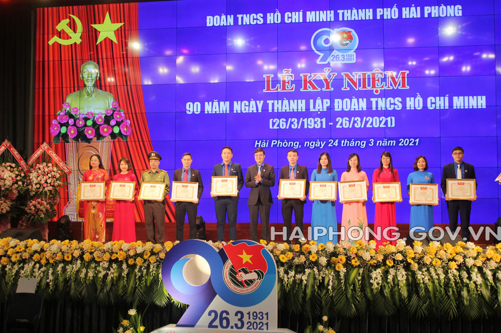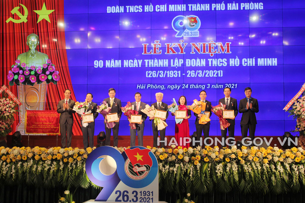 Tại Lễ kỷ niệm, để ghi nhận những kết quả, thành tích, những cống hiến và đóng góp của tuổi trẻ thành phố trong việc thực hiện nhiệm vụ chính trị của thành phố trong những năm qua, đồng thời cổ vũ, động viên tổ chức Đoàn tiếp tục phát huy thành tích, hoàn thành xuất sắc các nhiệm vụ trong thời gian tới, Thành ủy-HĐND-UBND-Ủy ban MTTQ Việt Nam thành phố trao tặng bức trướng cho Đoàn TNCS Hồ Chí Minh thành phố với nội dung “Tuổi trẻ Hải Phòng: đoàn kết, sáng tạo, bản lĩnh, tiên phong, tích cực đóng góp vào sự nghiệp xây dựng và phát triển thành phố”.