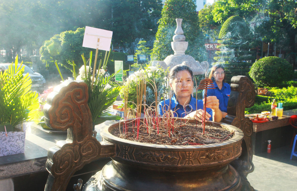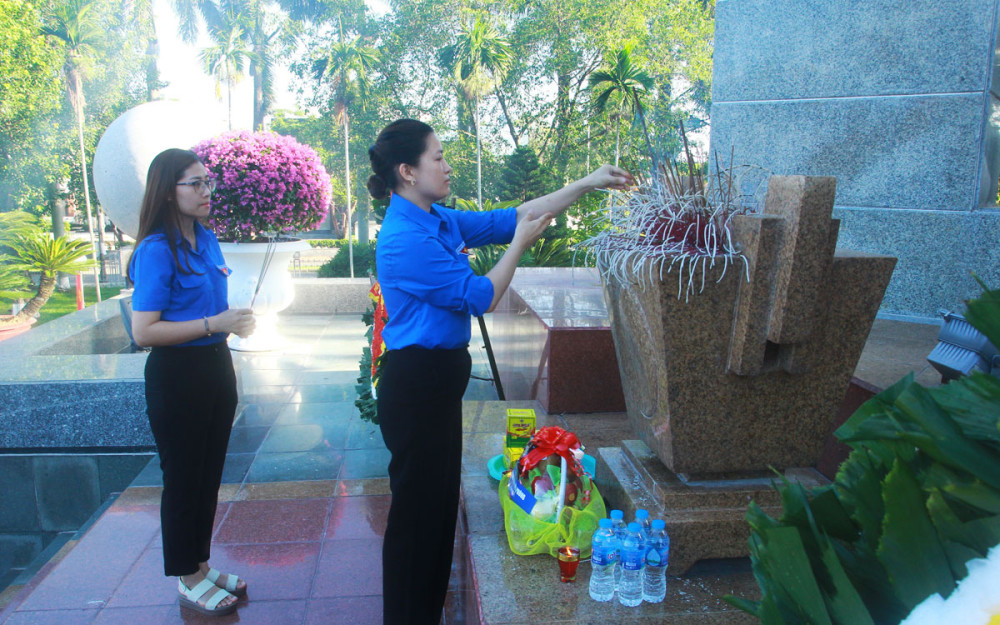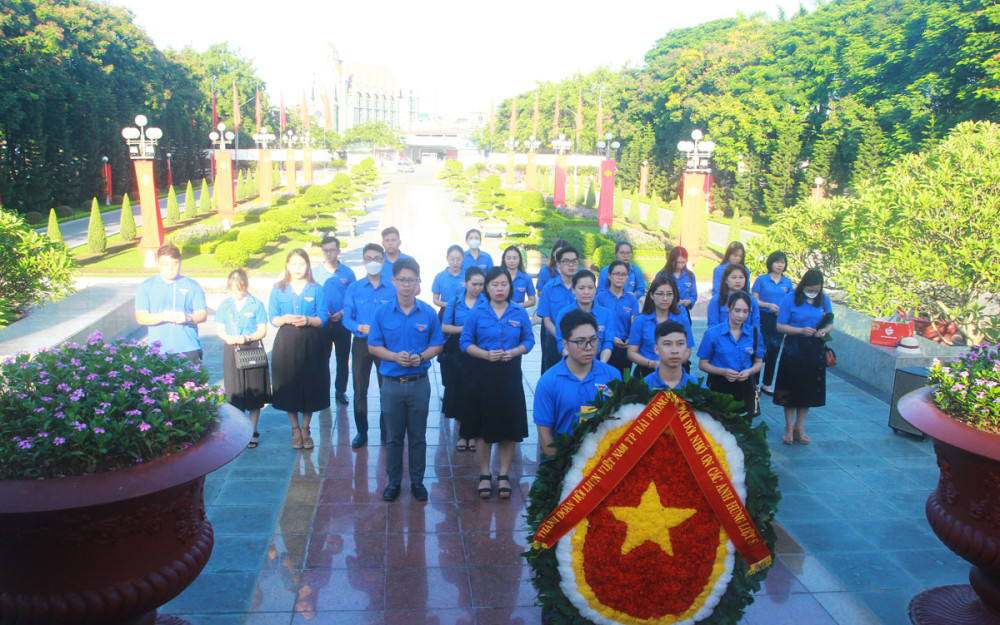 Tại Đài tưởng niệm các Anh hùng liệt sỹ thành phố, trong không khí trang nghiêm thành kính, Đoàn đại biểu Đoàn TNCS Hồ Chí Minh thành phố đã dành phút mặc niệm tưởng nhớ anh linh các Anh hùng liệt sỹ, những người con ưu tú của dân tộc đã không tiếc xương máu vì độc lập, tự do của Tổ quốc và hạnh phúc của Nhân dân.
