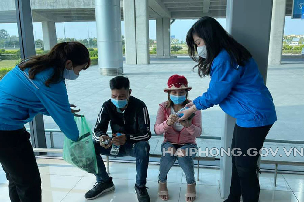 Tại Cảng hàng không quốc tế Cát Bi, để tập trung cao cho công tác phân luồng hành khách, Thành đoàn Hải Phòng đã vận động đoàn viên, thanh niên tham gia Đội Thanh niên tình nguyện hướng dẫn người dân khai báo y tế tại sân bay và tổng hợp số liệu người dân từ các vùng dịch về thành phố và các địa phương lân cận.