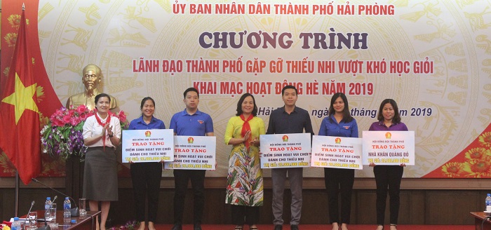 Hội đồng Đội thành phố hỗ trợ, giúp đỡ các em thiếu nhi có hoàn cảnh khó khăn xây mới và sửa chữa 6 Nhà Khăn quàng đỏ, trị giá 200 triệu đồng; trao 2 khu vui chơi cho thiếu nhi huyện Tiên Lãng và huyện Thủy Nguyên, trị giá 50 triệu đồng…