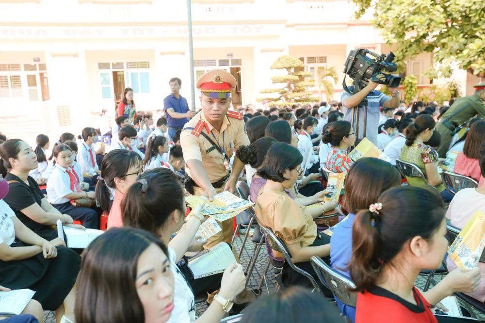 Thực hiện kế hoạch tháng cao điểm về đảm bảo TTATGT cho học sinh đến trường, sáng 18-9, Đội Cảnh sát giao thông – trật tự (CSGT-TT) Công an quận Hồng Bàng phối hợp với Đội tuyên truyền Phòng PC08-CATP đã tuyên truyền, phổ biến, giáo dục pháp luật về An toàn giao thông tại Trường Tiểu học Hùng Vương (quận Hồng Bàng, TP Hải Phòng).