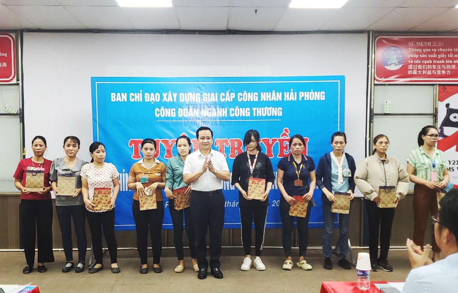 Chiều 22/6, Ban Chỉ đạo Xây dựng giai cấp công nhân Hải Phòng phối hợp với Công đoàn ngành Công Thương tổ chức Hội nghị tuyên truyền về chính sách đối với lao động nữ và bình đẳng giới tại Công ty TNHH Công nghiệp Giày Aurora Việt Nam (xã Thiên Hương, huyện Thủy Nguyên).
