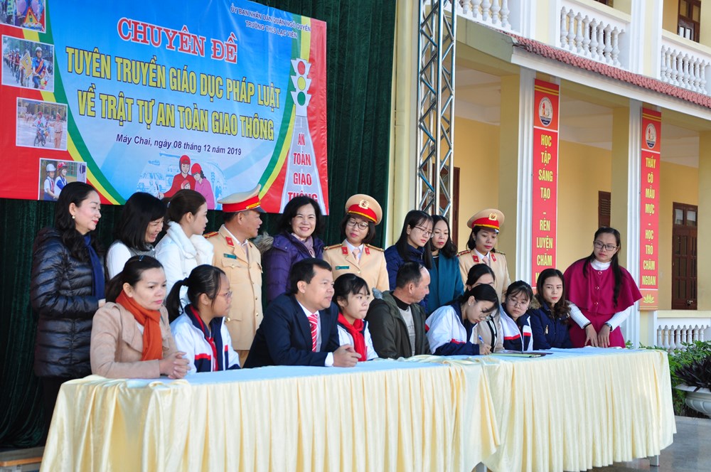 Cũng tại buổi tuyên truyền, đại diện phụ huynh và học sinh các khối đã tiến hành ký cam kết thực hiện tốt các quy định của Luật Giao thông đường bộ.