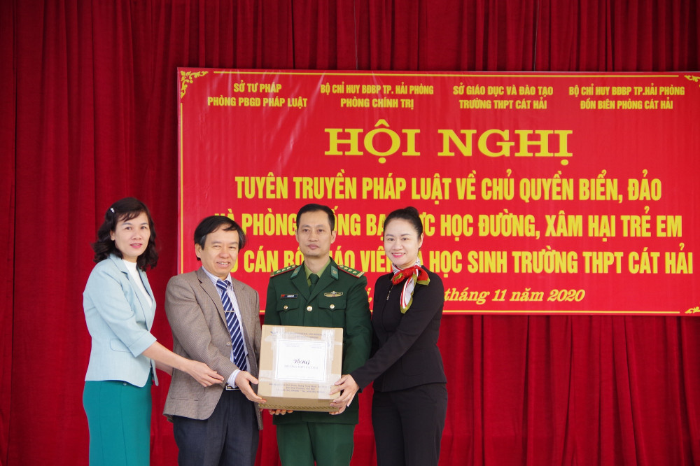 Bộ Chỉ huy Bộ đội Biên phòng thành phố thành phố vừa phối hợp với Sở Tư pháp và Đồn Biên phòng Cát Hải tổ chức chương trình tuyên truyền phổ biến pháp luật về chủ quyền biển, đảo và giới thiệu một số văn bản pháp luật cho gần 500 cán bộ, giáo viên và học sinh Trường THPT Cát Hải.