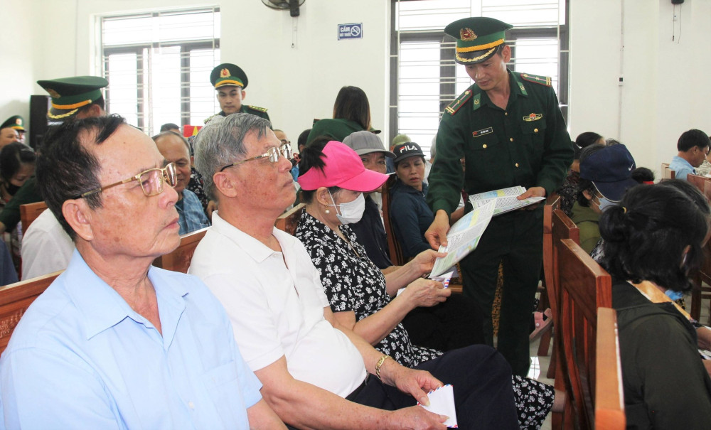 Nhân dịp này, BĐBP thành phố cấp, phát 150 tờ gấp tuyên truyền về Luật Biển Việt Nam; trao 100 phao tròn và 150 cờ Tổ quốc tặng ngư dân./.