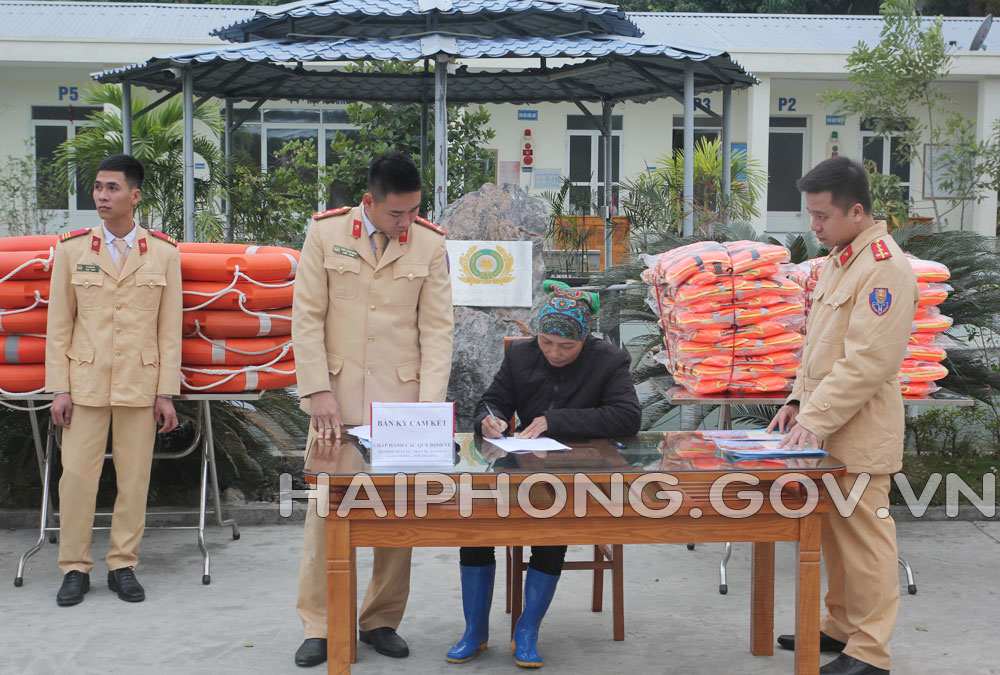 Sáng 7/1, tại xã Tam Hưng, huyện Thủy Nguyên, Công đoàn – Hội Phụ nữ – Đoàn Thanh niên Công an thành phố phối hợp với Trạm kiểm soát giao thông Bạch Đằng, Phòng Cảnh sát đường thủy tổ chức chương trình truyền thông và ký bản cam kết với người dân về chấp hành các quy định của pháp luật về đảm bảo an ninh trật tự và trật tự an toàn giao thông đường thủy nội địa; chống buôn bán, tàng trữ, vận chuyển và sử dụng pháo nổ, vật liệu nổ, đảm bảo an ninh trật tự trong dịp Tết Nguyên đán Tân Sửu năm 2021.