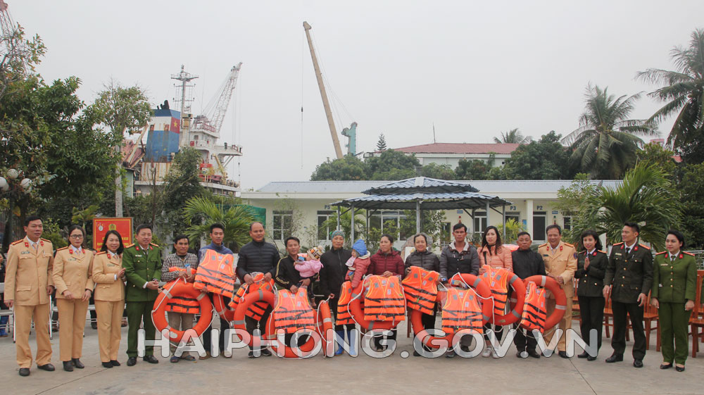 Nhân dịp này, Công đoàn – Hội Phụ nữ – Đoàn Thanh niên Công an thành phố phối hợp với Trạm kiểm soát giao thông Bạch Đằng, Phòng Cảnh sát đường thủy đã trao tặng áo phao cho bà con nhân dân.