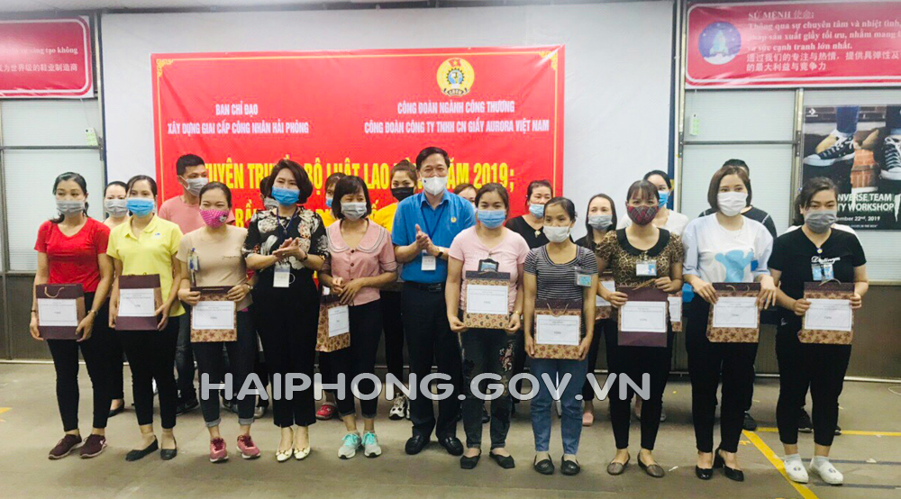 Chiều 28/4, Ban Dân vận Thành ủy, Cơ quan Thường trực Ban Chỉ đạo Xây dựng giai cấp công nhân Hải Phòng phối hợp với Công đoàn ngành Công Thương tổ chức Hội nghị tuyên truyền phổ biến Bộ luật Lao động năm 2019 và Luật Bầu cử đại biểu Quốc hội và đại biểu HĐND các cấp tại Công ty TNHH Công nghiệp Giày Aurora Việt Nam (xã Thiên Hương, huyện Thủy Nguyên).