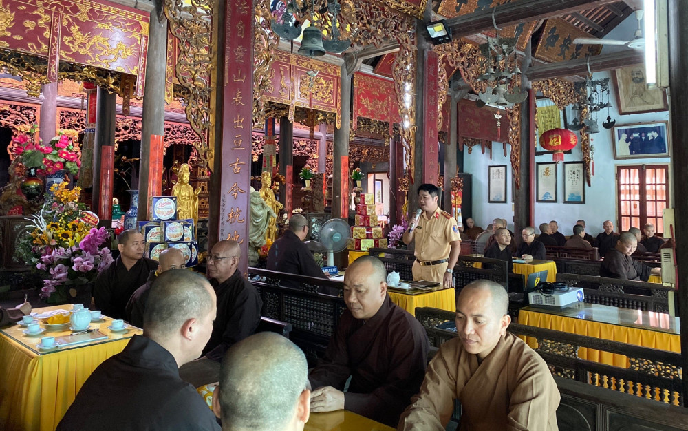 Thực hiện công tác tuyên truyền, phổ biến giáo dục pháp luật về trật tự, an toàn giao thông, Phòng cảnh sát giao thông đường bộ – đường sắt, Công an thành phố Hải Phòng đã phối hợp với Ban tri sự Giáo hội phật giáo Hải Phòng tiếp tục tổ chức tuyên truyền, phổ biến pháp luật về trật tự, an toàn giao thông hơn 200 chư Tôn đức Tăng ni tại Chùa Phúc Lâm Dư Hàng, phường Hồ Nam, quận Lê Chân và Chùa Phúc Thắng – Xã Vinh Quang – Huyện Tiên Lãng, thành phố Hải Phòng.