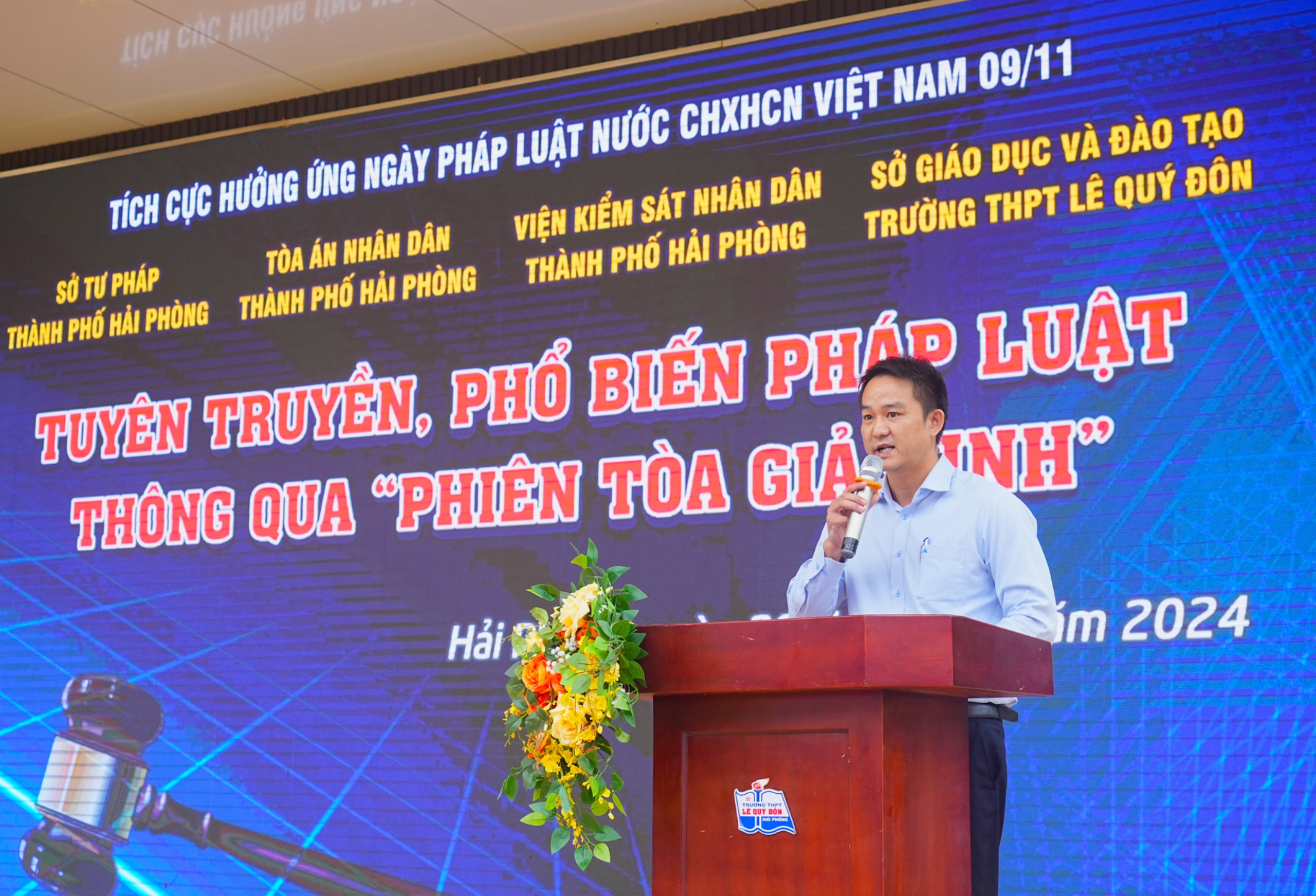 Hưởng ứng Ngày pháp luật nước CHXHCN Việt Nam (9/11), sáng 29/10 tại Trường THPT Lê Quý Đôn, Sở Tư pháp phối hợp với Tòa án Nhân dân thành phố, Viện Kiểm sát Nhân dân, Sở Giáo dục và Đào tạo tổ chức chương trình tuyên truyền phổ biến pháp luật về trật tự An toàn giao thông thông qua “Phiên tòa giả định”.