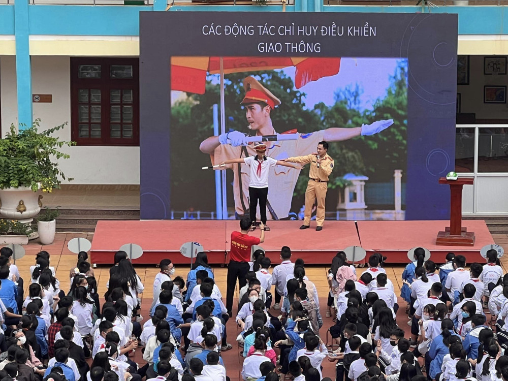 Bằng hình ảnh trực quan sinh động, chương trình tuyên truyền thu hút sự quan tâm chú ý của đông đảo các em học sinh nhà trường. Các cán bộ tuyên truyền đã đưa ra những tình huống lỗi vi phạm hay gặp khi các em tham gia giao thông, trao đổi để các em học sinh có dịp nhìn nhận lại những nguy cơ tiềm ẩn của việc không chấp hành hay thiếu hiểu biết về luật, thiếu kĩ năng khi tham gia giao thông…