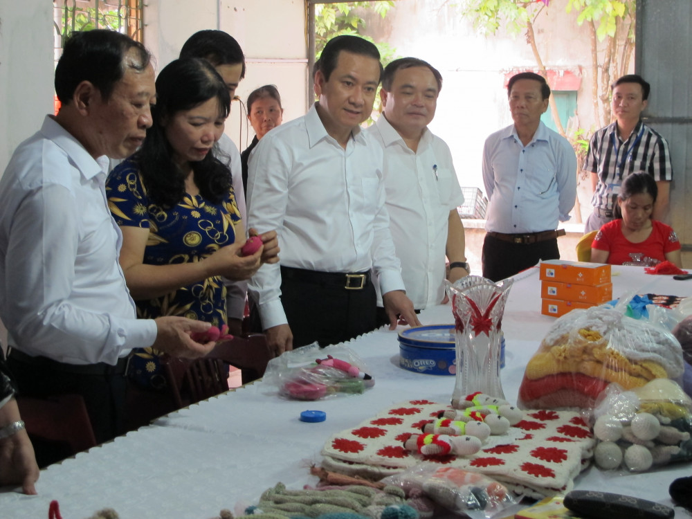Lãnh đạo thành phố thăm quan các sản phẩm của HTX thủ công mỹ nghệ An Dương
