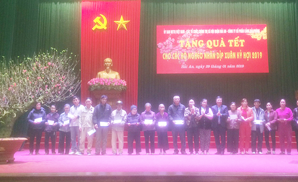 Nhân dịp Tết nguyên đán Kỷ Hợi 2019, với phương châm “Nhà nhà có tết, người người có tết”, UBMTTQ VN quận Hải An phối hợp với UBMTTQVN thành phố, các tổ chức chính trị xã hội quận, Công ty Cổ phần cảng Hải Phòng vừa tổ chức trao 180 suất quà tết, mỗi suất trị giá 300.000 đồng tặng các hộ nghèo trên địa bàn quận, trong đó UBMTTQVN thành phố và quận tặng 130 suất, công ty Cổ phần Cảng Hải Phòng tặng 50 suất.