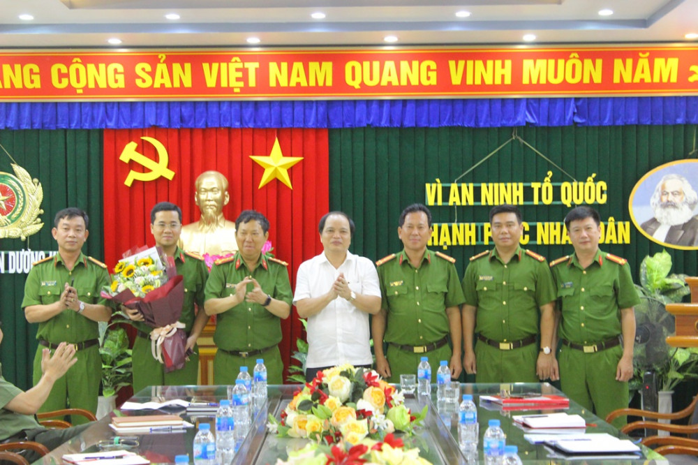 Đồng chí Lê Lương- Chủ tịch UBND quận Dương Kinh và Đại tá Nguyễn Văn Coỏng-Phó Giám đốc CATP khen thưởng CAQ Dương Kinh