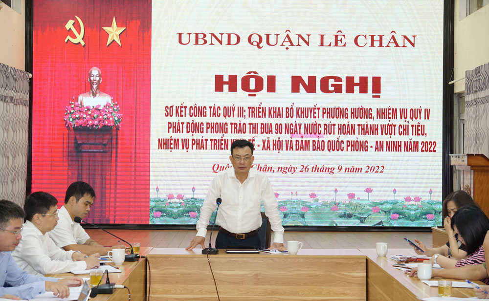 Về nhiệm vụ trọng tâm 3 tháng cuối năm 2022, UBND quận tăng cường các hoạt động của Ban chỉ đạo chống thất thu ngân sách các cấp nhằm rà soát các khoản nợ đọng thuế, đôn đốc thu nộp kịp thời các khoản nợ có khả năng thanh toán vào ngân sách nhà nước; đảm bảo hoàn thành và hoàn thành vượt mức dự toán thu ngân sách năm 2022; đẩy nhanh tiến độ giải ngân vốn đầu tư công theo kế hoạch và được phân cấp. Tăng cường công tác kiểm tra, quản lý trật tự xây dựng trên địa bàn quận. Tập trung quyết liệt thực hiện công tác giải phóng mặt bằng các dự án đặc biệt đối với dự án trọng điểm của thành phố và các mặt bằng đấu giá quyền sử dụng đất: Dự án khu tái định cư A51; dự án Hoàng Huy Commerce, mặt bằng lô TM15, Lô N38-5 và các dự án khác. Triển khai có hiệu quả kế hoạch Chuyển đổi số trên địa bàn quận, đảm bảo thực chất, hiệu quả. Tiếp tục thực hiện hiệu quả các biện pháp phòng chống dịch Covid-19; nâng cao chất lượng dạy-học, giữ vững vị trí tốp đầu thành phố về giáo dục mũi nhọn và giáo dục đại trà; thực hiện chuyển đổi số trong giáo dục và đào tạo; tập trung làm tốt công tác tham mưu, đôn đốc, hướng dẫn tuyên truyền chủ đề năm 2022 của thành phố và quận. Đẩy mạnh cải cách hành chính, cải cách công vụ, tăng cường kỷ luật kỷ cương hành chính, nâng cao hiệu quả công tác thanh tra, kiểm tra, tiếp công dân, giải quyết khiếu nại, tố cáo, quyết liệt chống tham nhũng, thực hành tiết kiệm, chống lãng phí. Củng cố quốc phòng, an ninh, bảo đảm an ninh chính trị, trật tự an toàn xã hội…