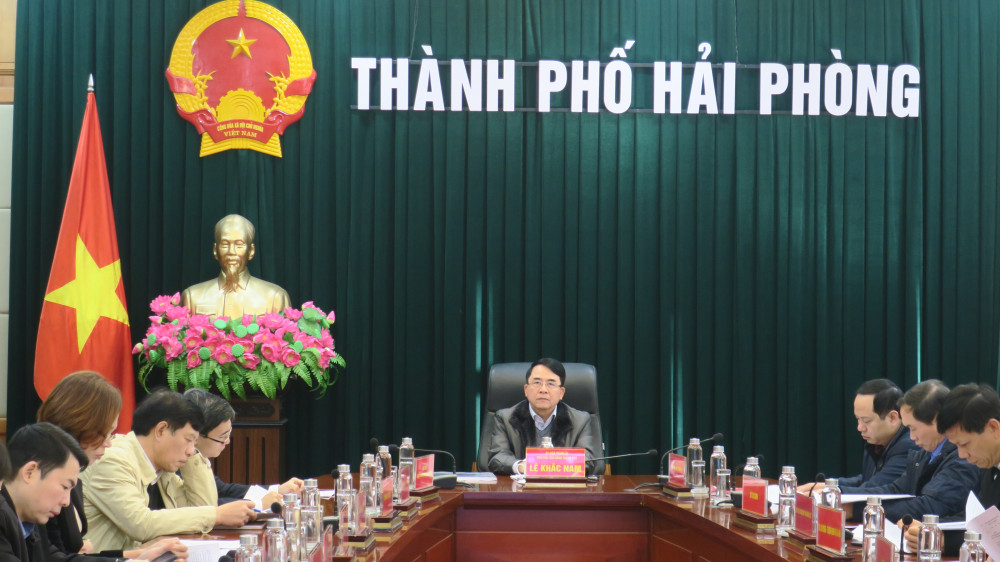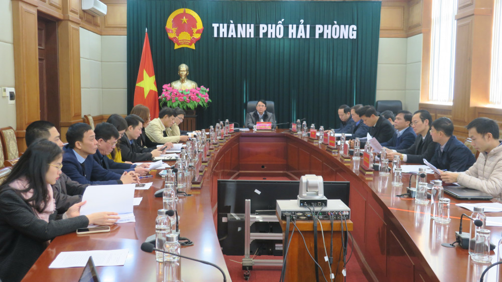 Tại điểm cầu thành phố Hải Phòng, Phó Chủ tịch UBND thành phố Lê Khắc Nam cùng đại diện lãnh đạo các Sở, ngành, đoàn thể liên quan dự Hội nghị.