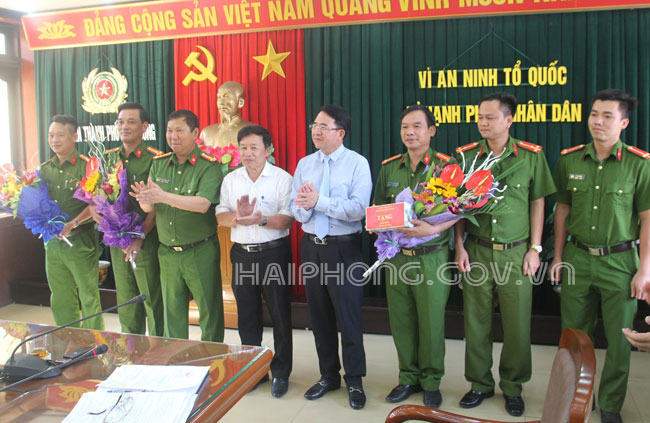 Phó Chủ tịch UBND thành phố Lê Khắc Nam trào quà cho Ban chuyên án HP001