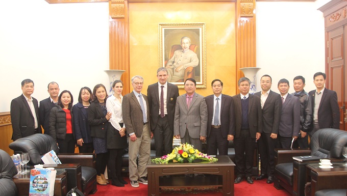 Phó Chủ tịch UBND thành phố Lê Khắc Nam, đại diện các Sở, ngành chụp hình lưu niệm cùng Đoàn chuyên gia hỗ trợ Dự án DRIVE