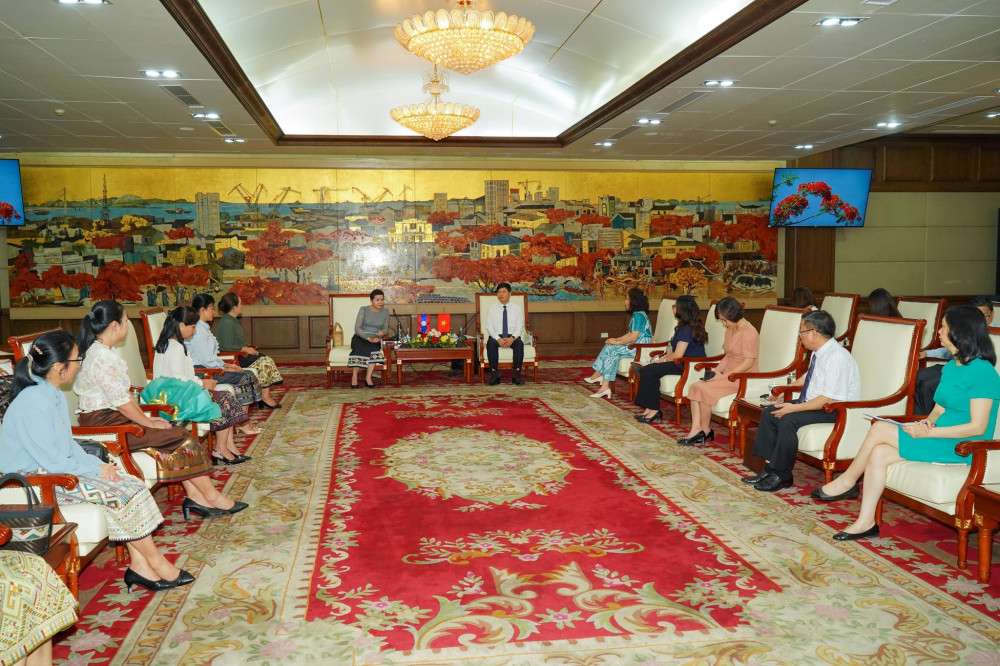 Chiều 19/5, Phó Chủ tịch UBND thành phố Hoàng Minh Cường tiếp xã giao Đoàn nữ cán bộ lãnh đạo Ngoại giao hai nước Việt Nam-Lào do bà Alouny Kommasit, phu nhân Phó Thủ tướng, Bộ trưởng Bộ Ngoại giao Lào và bà Vũ Thị Bích Ngọc, phu nhân Bộ trưởng Bộ Ngoại giao Việt Nam dẫn đầu đến thăm và làm việc tại Hải Phòng.