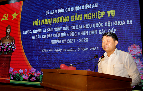 Chiều 4/5, Ủy ban bầu cử quận Kiến An tổ chức hội nghị hướng dẫn nghiệp vụ trước, trong và sau ngày bầu cử đại biểu Quốc hội khóa XV và bầu cử đại biểu HĐND các cấp nhiệm kỳ 2021-2026.