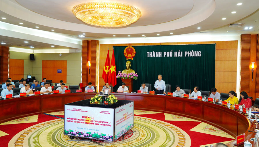Phát biểu tại cuộc làm việc, đồng chí Lê Quang Huy, Chủ nhiệm Ủy ban Khoa học, Công nghệ và Môi trường ghi nhận những kết quả thành phố Hải Phòng đã đạt được trong thời gian qua; đã kịp thời chỉ đạo các sở, ngành phối hợp với chính quyền địa phương tham mưu, ban hành các văn bản đáp ứng công tác quản lý chất thải rắn sinh hoạt phát sinh; đã ban hành các văn bản về giá và đơn giá thu gom, vận chuyển và xử lý chất thải rắn đô thị, nông thôn trên địa bàn thành phố; không để xảy ra sự cố tại các khu xử lý chất thải rắn sinh hoạt đô thị giai đoạn 2016-2021. Đồng chí thống nhất với một số tồn tại, hạn chế thành phố đã chỉ ra và đề nghị thành phố có giải pháp để khắc phục; bên cạnh đó, triển khai có hiệu quả các quy định quản lý chất thải rắn theo Luật Bảo vệ môi trường năm 2020; tiếp tục tăng cường công tác tuyên truyền phân loại chất thải rắn sinh hoạt tại nguồn.