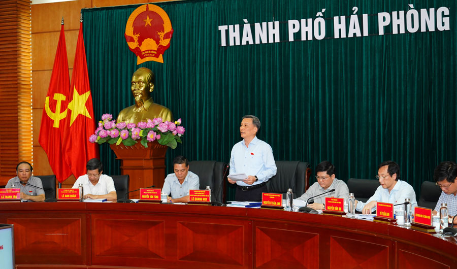 Tiếp và làm việc với Đoàn có các đồng chí: Nguyễn Văn Tùng, Phó Bí thư Thành ủy, Chủ tịch UBND thành phố; Lê Anh Quân, Phó Chủ tịch Thường trực UBND thành phố; Lã Thanh Tân, Phó Trưởng Đoàn chuyên trách ĐBQH Hải Phòng và lãnh đạo các sở, ngành, địa phương liên quan.