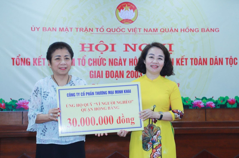 Tại Hội nghị, Ủy ban MTTQ Việt Nam quận Hồng Bàng tổ chức tiếp nhận tổng số kinh phí 140 triệu đồng của các doanh nghiệp, cá nhân ủng hộ Quỹ “Vì người nghèo”.