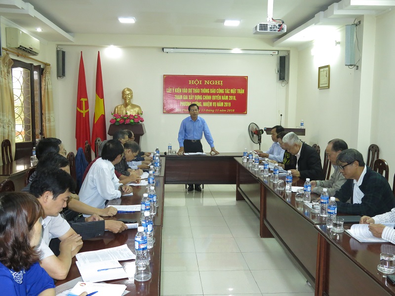 Sáng 13-11, Ban Thường trực Ủy ban MTTQ Việt Nam thành phố tổ chức hội nghị lấy ý kiến về Dự thảo Thông báo công tác Mặt trận tham gia xây dựng chính quyền năm 2018, phương hướng nhiệm vụ năm 2019. Đồng chí Cao Xuân Liên – Ủy viên Ban Thường vụ Thành ủy, Chủ tịch Ủy ban MTTQ Việt Nam thành phố chủ trì hội nghị.