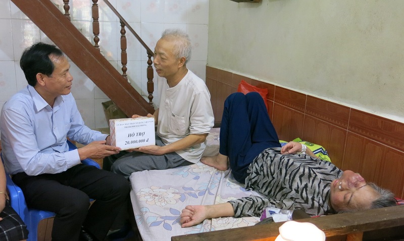 Đồng chí Đỗ Tràng Thành – Phó Chủ tịch Ủy ban MTTQ Việt Nam thành phố trao kinh phí hỗ trợ gia đình bà Vũ Thị Bích Nga