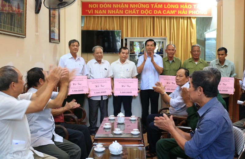 Nhân dịp này, đoàn công tác đã trao kinh phí hỗ trợ cho 14 nạn nhân chất độc da cam với trị giá 5 triệu đồng/suất.