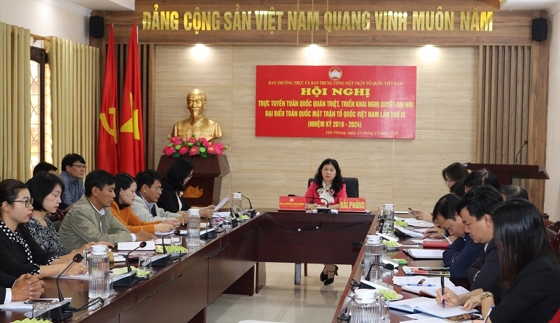 Sáng 21-11, Ban Thường trực Ủy ban Trung ương MTTQ Việt Nam tổ chức hội nghị trực tuyến toàn quốc quán triệt, triển khai Nghị quyết Đại hội Đại biểu toàn quốc MTTQ Việt Nam lần thứ IX (nhiệm kỳ 2019-2024). Đồng chí Trần Thanh Mẫn – Bí thư Trung ương Đảng, Chủ tịch Ủy ban Trung ương MTTQ Việt Nam chủ trì hội nghị. Tại điểm cầu Hải Phòng, đồng chí Nguyễn Thị Mai Phương – Phó Chủ tịch Thường trực Ủy ban MTTQ Việt Nam thành phố chủ trì hội nghị.