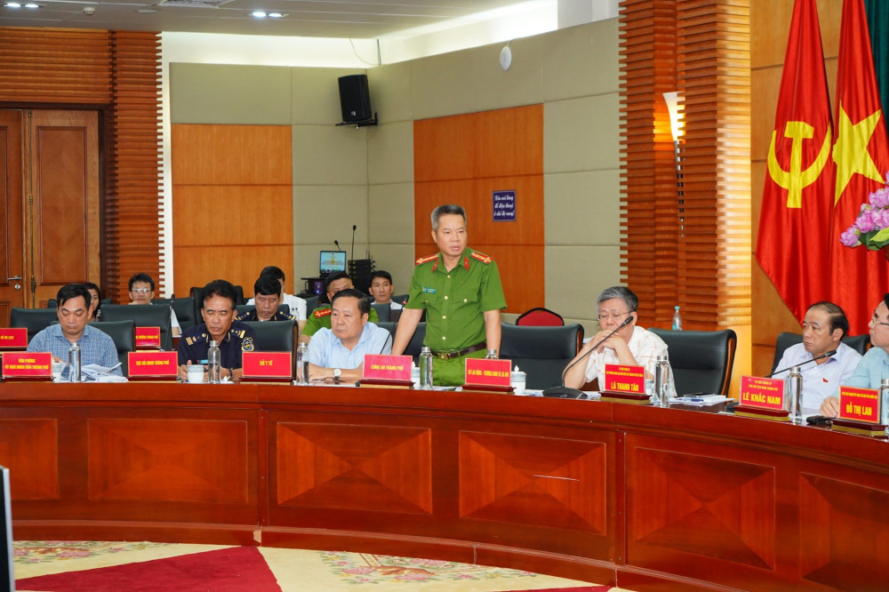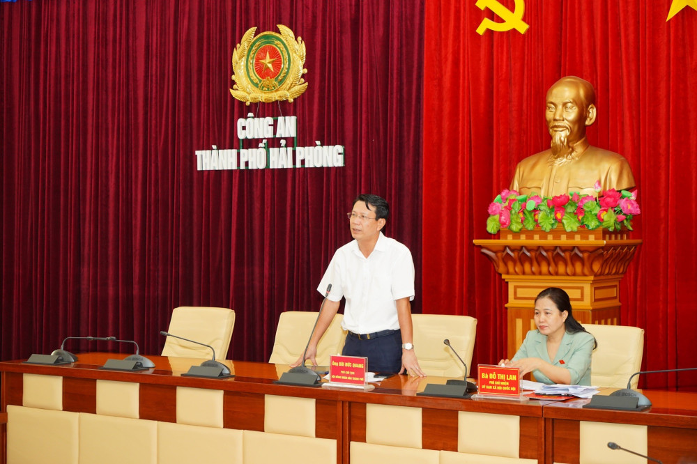 Làm việc với Đoàn giám sát có Phó Chủ tịch UBND thành phố Lê Khắc Nam; Phó Trưởng đoàn Đoàn Đại biểu Quốc hội chuyên trách thành phố Lã Thanh Tân; Phó chủ tịch HĐND thành phố Bùi Đức Quang. Cùng dự có lãnh đạo Công an thành phố (CATP), các sở, ngành liên quan.