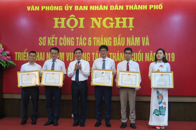 Tại Hội nghị, thừa ủy quyền của Chủ tịch nước, Phó Chủ tịch Thường trực UBND thành phố Nguyễn Xuân Bình trao tặng Huân chương Lao động hạng 3 cho Phòng Quản trị – Tài vụ, Văn phòng UBND thành phố vì đã có thành tích xuất sắc trong thực hiện nhiệm vụ từ năm 2013-2017, góp phần xây dựng chủ nghĩa xã hội. Nhân dịp này, Chánh Văn phòng UBND thành phố Quyết định tặng Giấy khen cho 9 tập thể có thành tích xuất sắc trong công tác chuẩn bị phục vụ Kỳ họp thứ 10, HĐND thành phố khóa XV; 11 cá nhân có thành tích xuất sắc trong công tác phục vụ các sự kiện trong tháng 5/2019 và Lễ hội Hoa Phượng Đỏ – Hải Phòng năm 2019; 4 tập thể và 5 cá nhân có thành tích xuất sắc trong việc thực hiện nhiệm vụ cải cách hành chính tại Văn phòng UBND thành phố.