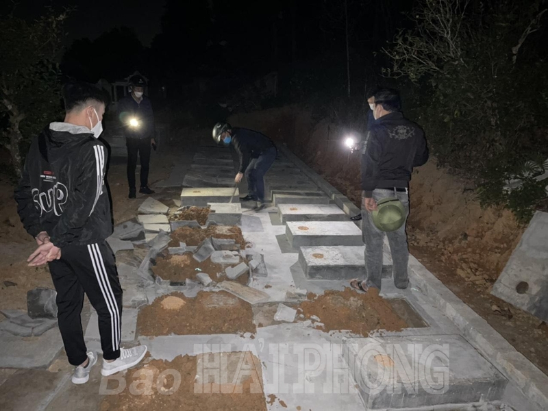 Chiều 9/12, theo thông tin từ Phòng tài nguyên và Môi trường huyện Thủy Nguyên, ngay sau khi nhận được phản ánh về hiện tượng người dân xây dựng mộ giả trong khu vực quy hoạch nghĩa trang Phi Liệt mở rộng tại thôn 9, xã Lại Xuân (huyện Thủy Nguyên), lãnh đạo UBND huyện trực tiếp xuống địa phương kiểm tra và chỉ đạo xử lý.