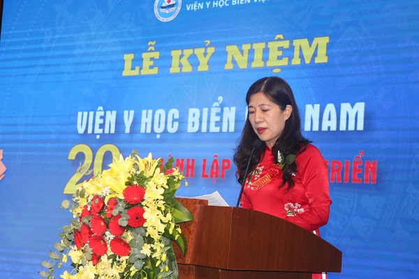 Thay mặt Đảng ủy, Ban lãnh đạo Viện Y học biển, TTƯT.PGS.TS Nguyễn Quỳnh Chi, Viện trưởng Viện Y học biển đã trình bày báo cáo 20 năm xây dựng và phát triển Viện. 20 năm, một chặng đường với những khó khăn, thử thách nhưng được sự ủng hộ của lãnh đạo Bộ Y tế qua các thời kỳ cùng các Ban, Ngành trung ương và địa phương nơi Viện đặt trụ sở, đặc biệt tập thể cán bộ, công nhân viên và người lao động tại Viện luôn đoàn kết một lòng cùng vượt qua sóng gió để hoàn thành nhiệm vụ được giao.