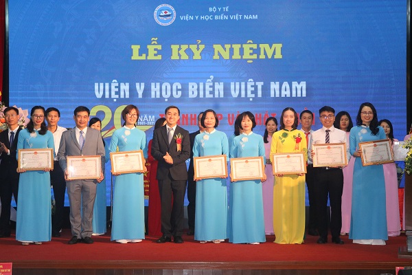 Nhân dịp này, tập thể Viện nhận Cờ Thi đua của Chính phủ và TTND.GS.TS Nguyễn Trường Sơn, nguyên Viện trưởng đã vinh dự đón nhận Huân chương lao động Hạng 2 và TTƯT.PGS.TS Trần Thị Quỳnh Chi, Viện trưởng Viện Y học biển vinh dự đón nhận Huân chương lao động Hạng 3 vì những nỗ lực, cống hiến cho việc xây dựng và phát triển Viện cùng nhiều Bằng khen của Bộ Y tế và UBND thành phố trao tặng cho tập thể và cá nhân đã có nhiều đóng góp trong việc chăm sóc và bảo vệ sức khỏe nhân dân.