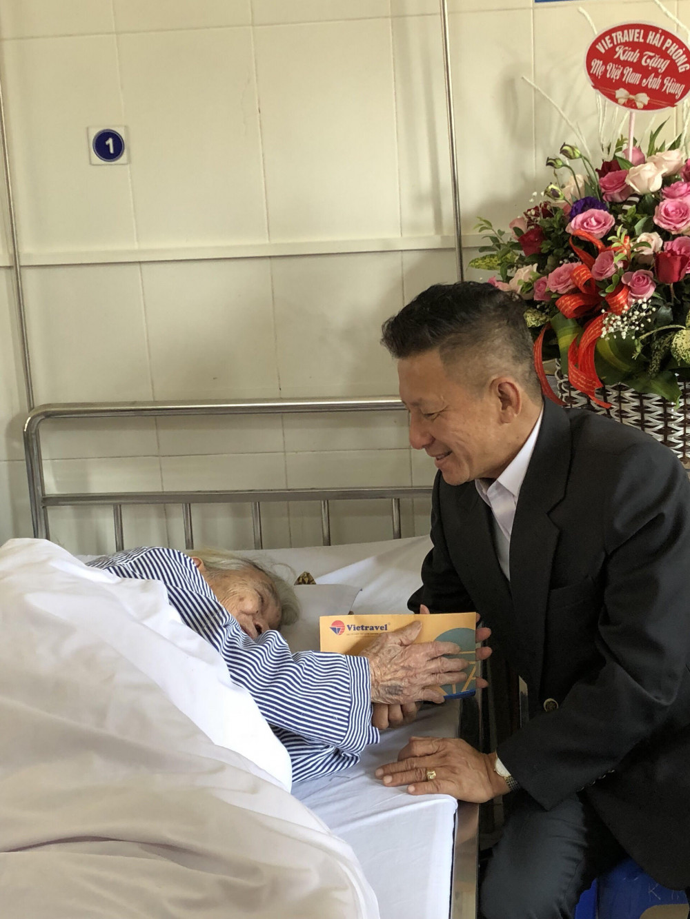 Ông Nguyễn Thanh Hải, Giám đốc Vietravel chi nhánh Hải Phòng thăm tặng quà Mẹ Việt Nam anh hùng Nguyễn Thị Ly