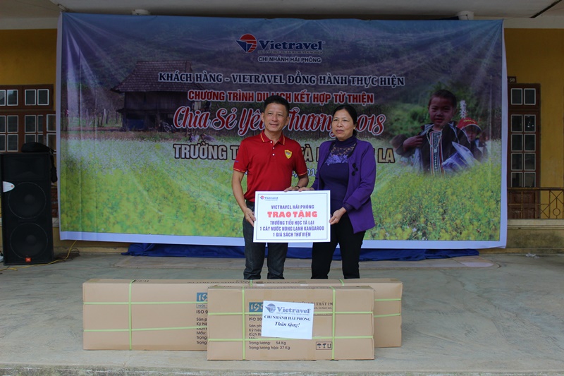 Ngày 24-11, tập thể cán bộ, nhân viên của Công ty Vietravel Chi nhánh Hải Phòng cùng với nhiều khách hàng thân thiện đã tổ chức trao 122 suất quà, 1 cây nước nóng lạnh, 1 giá sách thư viện cùng nhiều phần quà giá trị khác tặng các em học sinh nghèo trường Tiểu học Tà Lại, tỉnh Sơn La trong chương trình “Chia sẻ yêu thương” năm 2018 . Tổng giá trị quà tặng khoảng 100 triệu đồng.