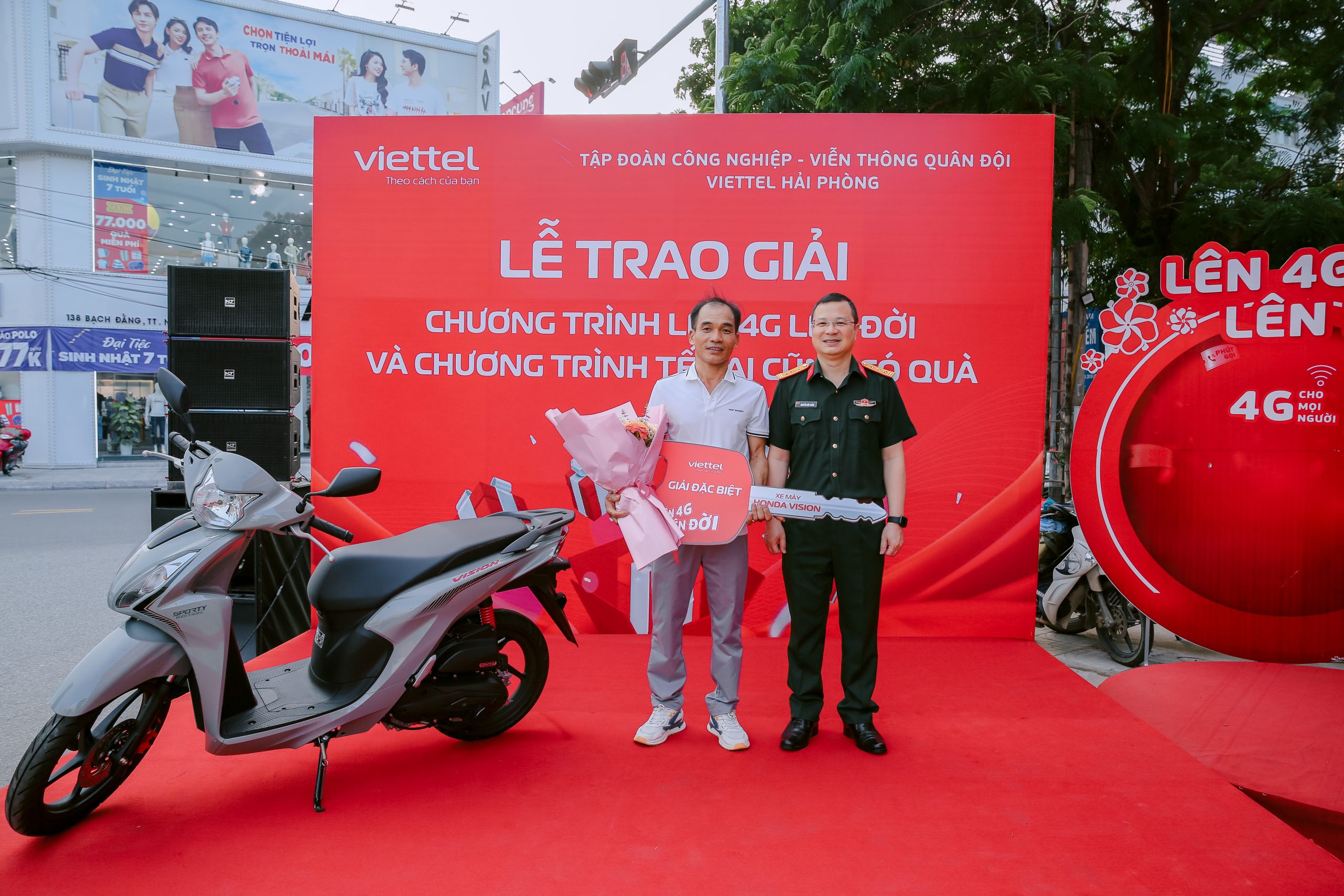 Trong các ngày 23/1, 11/3 và 11/4/2024, Viettel Hải Phòng đã quay thưởng để tìm ra 3 khách hàng may mắn trúng thưởng. Mỗi đợt của chương trình có một khách hàng trúng thưởng và được tặng 1 điện thoại samsung Galaxy A05. Đặc biệt, trong đợt 11/4/2024, ngoài việc tìm ra khách hàng may mắm được tặng điện thoại samsung Galaxy A05 chương trình đã tìm ra 1 khách hàng may mắn nhất của chương trình trong số gần 13.583 khách hàng đủ điều kiện tham gia quay thưởng. Khách hàng trúng Giải đặc biệt là 1 xe máy Honda Vision phiên bản thể thao trị giá 37 triệu đồng thuộc về ông Trần Văn Nhân sinh năm 1976 tại Thôn 1, xã Liên Khê, huyện Thủy Nguyên Hải Phòng.