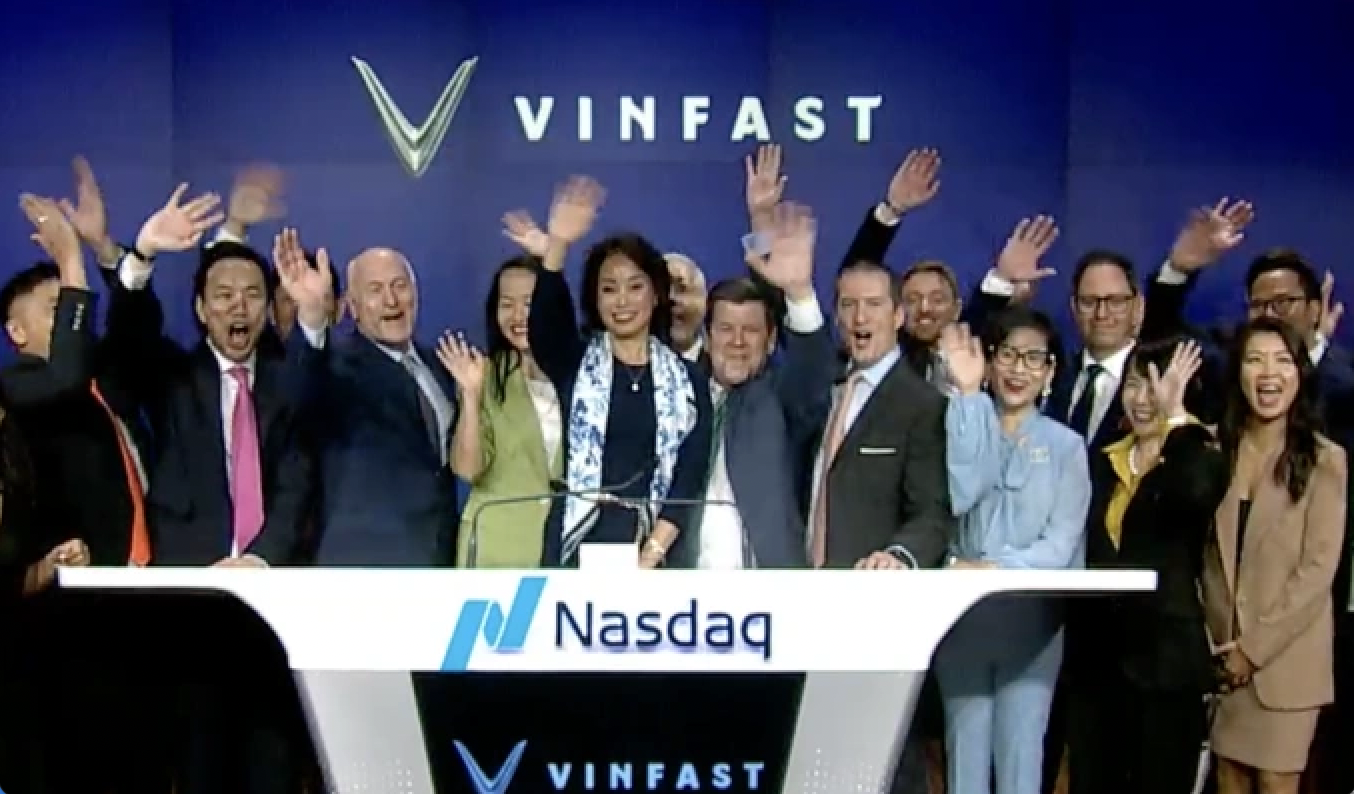 Tối nay (15.8, theo giờ Việt Nam), VinFast đã rung chuông ra mắt trên Nasdaq Global Select Market, chính thức trở thành công ty niêm yết đại chúng có tầm vóc toàn cầu. Công ty có giá trị vốn hoá hơn 23 tỉ USD, hoạt động dưới pháp nhân VinFast Auto Ltd. Sau sự kiện, cổ phiếu phổ thông và chứng quyền VinFast sẽ bắt đầu giao dịch trên sàn dưới các mã niêm yết mới lần lượt là VFS và VFSWW.