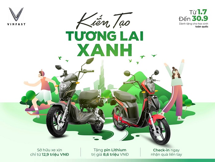 Phát biểu về chính sách ưu đãi vượt trội của chương trình, ông Hoàng Hà – Phó Tổng giám đốc Kinh doanh – Marketing Xe máy điện VinFast cho biết: “Kiến tạo tương lai xanh là chương trình ưu đãi đặc biệt, được VinFast dành riêng cho thế hệ trẻ Việt Nam nhằm thúc đẩy lối sống xanh, có trách nhiệm với môi trường và xã hội. Vì thế, VinFast sẵn sàng đầu tư 430 tỷ đồng để đồng hành cùng các chủ nhân tương lai của đất nước, chung tay kiến tạo nên một Việt Nam xanh, sạch và an toàn hơn cho thế hệ mai sau”.