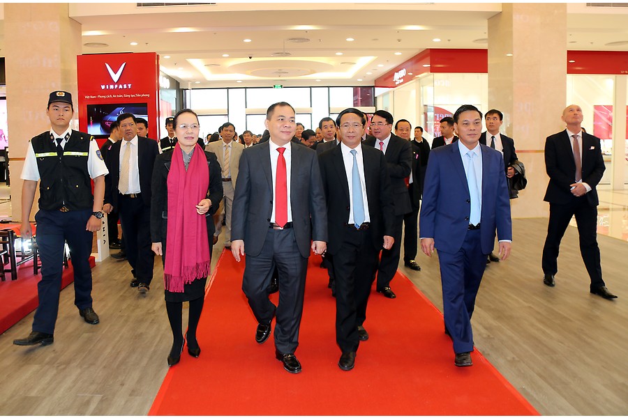 Đồng chí Lê Văn Thành, Ủy viên Trung ương Đảng, Bí thư Thành ủy, Chủ tịch HĐND thành phốcùng các lãnh đạo thành phố và Tập đoàn Vingroup tham quan Trung tâm thương mại và khách sạn 5 sao