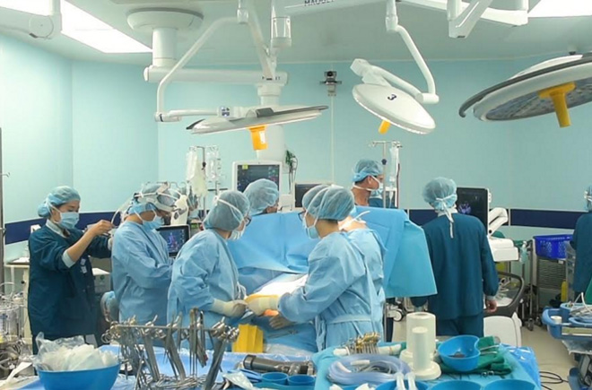 Với sự chuẩn bị kỹ lưỡng, ekip đa chuyên khoa Bệnh viện Vinmec Times City đã phối hợp nhuần nhuyễn trong suốt thời gian hơn 5h phẫu thuật cấy ghép tim bán phần nhân tạo cho y tá Vi Thi Tân.